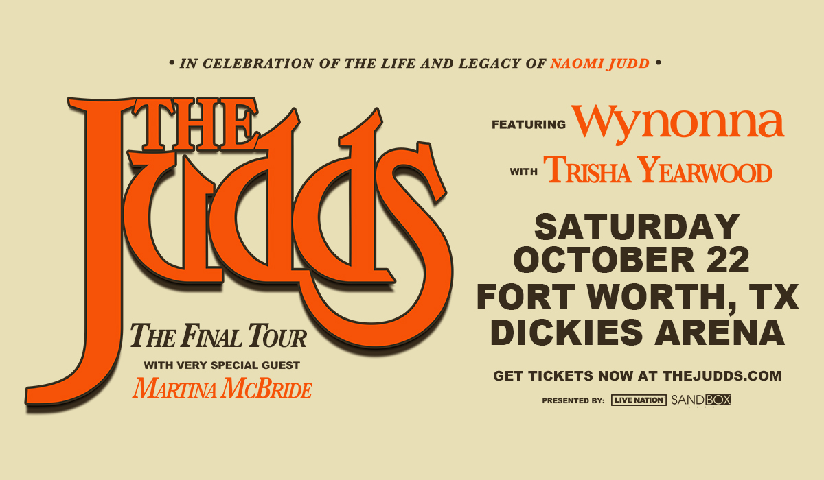ANNOUNCEMENT: GRAMMY®-winning icon, Wynonna Judd, has announced the line-up of special guests who will be joining her on the road for The Judds: The Final Tour. Along with Martina McBride, who will join her on the road for the entirety of the tour, Wynonna is thrilled to welcome Trisha Yearwood to the stop at Dickies Arena on Saturday, October 22 to honor the legacy of The Judds and their everlasting impact on Country music.